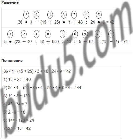 | 5 • (23 - 27 : 3) + 600 : 10 : 5 - 64 : (15 - 7) |