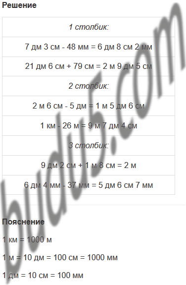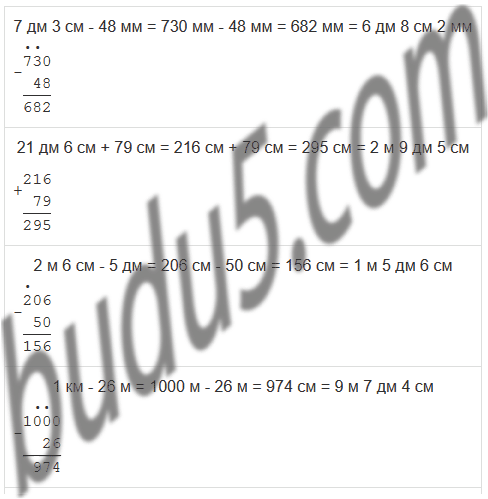 | 7 дм 3 см - 48 мм | 2 м 6 см - 5 дм | 9 дм 2 см + 1 м 8 см |
