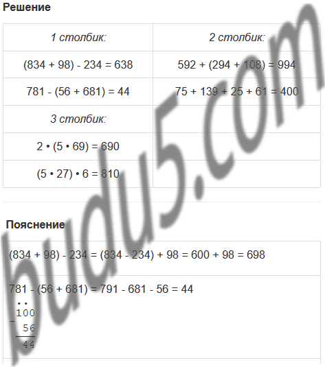 | 781 - (56 + 681) | 75 + 139 + 25 + 61 | (5 • 27) • 6 |