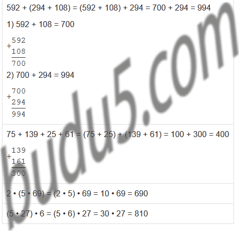 | (834 + 98) - 234 | 592 + (294 + 108) | 2 • (5 • 69) |