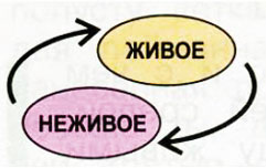 "Живое – неживое" – это обратная связь. Отжившие свою жизнь живые организмы и отмершие растения удобряют собой почву.