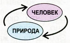 "Природа – человек". Человек полностью зависит от природы. Он получает от неё свет, тепло, воздух, воду, пищу, одежду, кров.