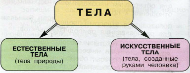 ► Рассмотри схему. На какие две группы можно разделить тела? Приведи примеры тел каждой группы.