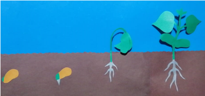 Модель процесса развития растения из семени можно сделать объёмной. На коричневой ленте из цветной бумаги, при помощи которой мы изображаем почву, расположите детали всех этапов процесса развития растения из семени. Затем склейте края, чтобы образовался круг.