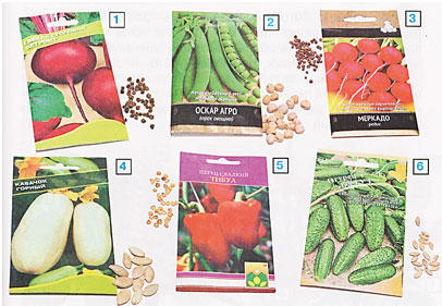 4. Рассмотри семена овощных растений. Сравни семена по размеру, форме, цвету.