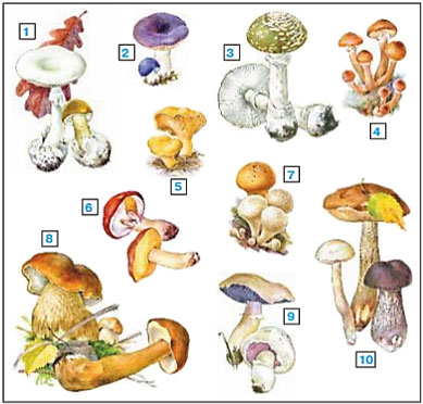 2. Узнай грибы по рисункам. Назови их (устно). Если сомневаешься, посмотри в атласе – определителе.