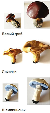 3. Используя атлас – определитель, вылепи из пластилина несколько съедобных и несъедобных грибов. Постарайся передать их отличительные признаки.