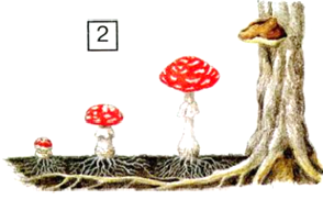 На рисунке 2 изображены этапы роста гриба. Сначала он совсем маленький появляется из земли, затем растёт до размеров взрослого гриба.