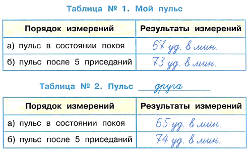 2. Измеряем пульс у членов своей семьи. Данные записываем в рабочую тетрадь.