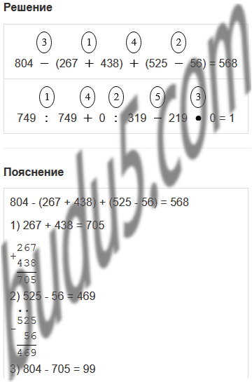 | 804 - (267 + 438) + (525 - 56) | 749 : 749 + 0 : 319 - 219 • 0 |