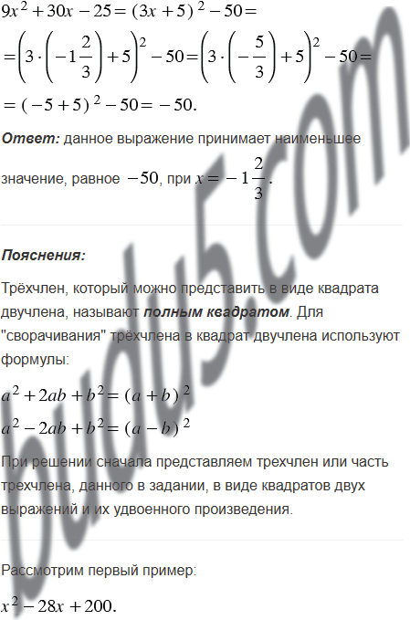 Какое наименьшее значение и при каком значении переменной принимает выражение:
