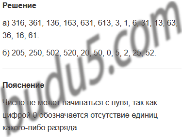 Задание № 5. Составь все возможные числа из цифр: а) 3, 1, 6; б) 2, 0, 5.