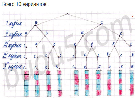 Задание № 7. Сколькими способами Петя может выстроить башню из 2 красных и 3 синих кубиков? Закончи в тетради составление "дерева" и сделай рисунки полученных вариантов решения. Сколько всего вариантов?