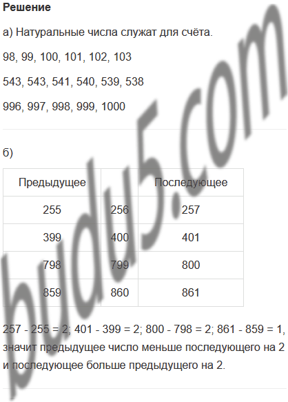 а) Для чего служат натуральные числа? Сосчитай от 98 до 103, от 543 до 538, от 996 до 1000.