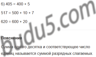 б) Запиши в виде суммы разрядных слагаемых числа 405, 517, 620, 893.