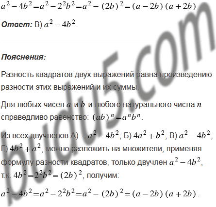Какой из данных двучленов можно разложить на множители, применяя формулу разности квадратов?