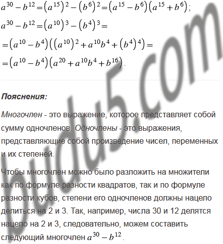 Придумайте многочлен, который можно разложить на множители как по формуле разности квадратов, так и по формуле разности кубов. Разложите придуманный многочлен на множители по этим формулам.