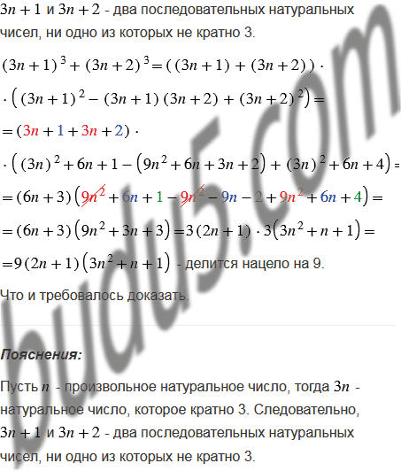 Докажите, что сумма кубов двух последовательных натуральных чисел, ни одно из которых не кратно 3, делится нацело на 9.
