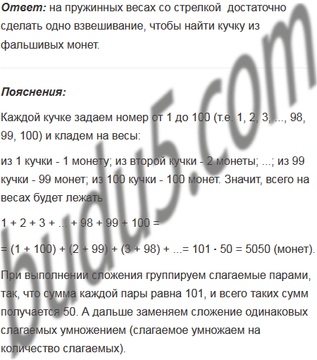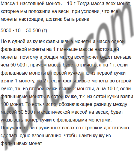 Есть 100 кучек по 100 монет. Одна из кучек состоит из фальшивых монет, каждая из которых на 1 г легче настоящей. Вес настоящей монеты составляет 10 г. Какое наименьшее количество взвешиваний на пружинных весах со стрелкой надо сделать, чтобы найти кучку из фальшивых монет?