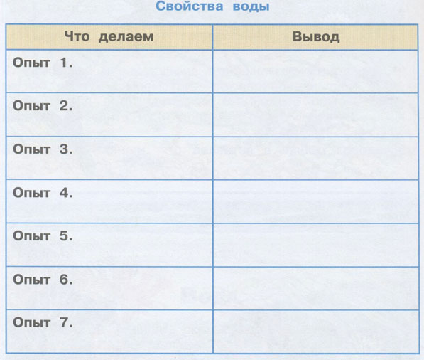 Оборудование. У учащихся: три лабораторных стакана (из них – с водой); ложка, соль, измельчённый мел, воронка, бумага для изготовления фильтра, ножницы. У учителя: колба с трубкой, заполненная подкрашенной водой; тарелка с горячей водой, тарелка со льдом.