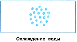 Изображаем с помощью схематического рисунка, как располагаются частицы воды при нагревании и охлаждении. (Частицы воды обозначаем кружочками).