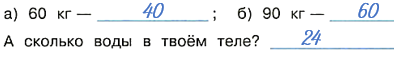 2. Вычисли и запиши, сколько воды в теле человека, если его масса составляет: