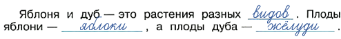 Яблоня и дуб – это растения разных __________ . Плоды яблони – __________ , а дуба – _________ .