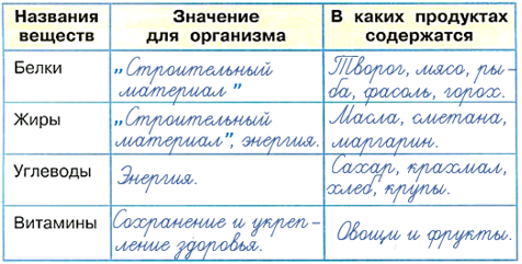 1. С помощью учебника заполни таблицу "Питательные вещества".