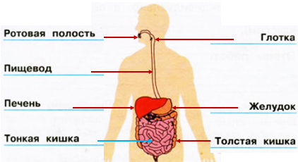 3. Указываем стрелками части пищеварительной системы.