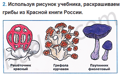 2. Используя рисунок учебника, раскрась грибы из Красной книги России.