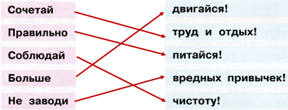 1. Соединяем линиями слова в левом и правом столбиках, чтобы получились правила здорового образа жизни.