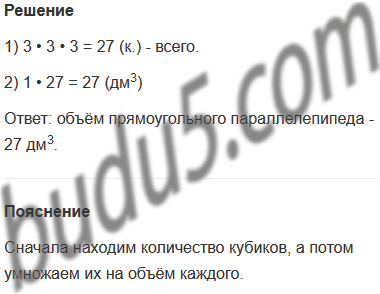 Задание № 66. На рисунке некоторые кубики спрятались. Найди объём прямоугольного параллелепипеда, если объём каждого кубика равен 1 дм3.
