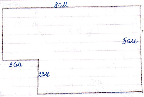 67. Длина прямоугольника равна 5 см, а ширина - 8 см. От одного из его углов отрезали квадрат со стороной 2 см. Построй получившуюся фигуру, найди её периметр и площадь.