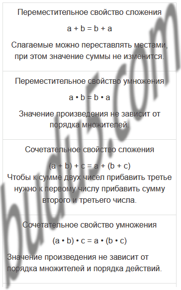 Задание № 69. Прочитай название свойств арифметических действий и подбери подходящие равенства. Объясни их смысл и проиллюстрируй с помощью графических моделей.