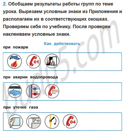 2. Обобщи результаты работы групп по теме урока. Вырежи условные знаки из Приложения и расположи их в соответствующих окошках. Проверь себя по учебнику. После проверки наклей условные знаки.