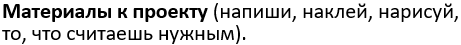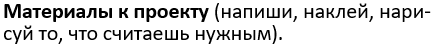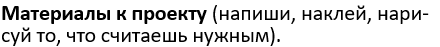 Материалы к проекту (напиши, наклей, нарисуй то, что считаешь нужным). ______________________