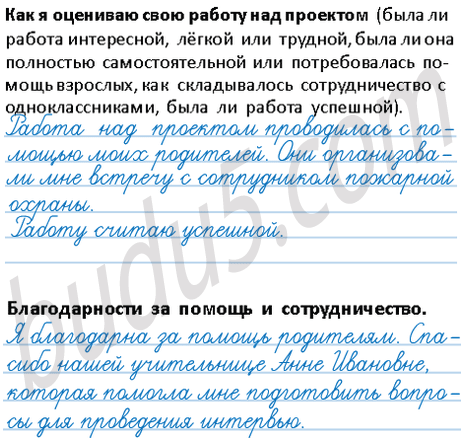 Как я оцениваю свою работу над проектом (была ли работа интересной, лёгкой или трудной, была ли она полностью самостоятельной или потребовалась помощь взрослых, как складывалось сотрудничество с одноклассниками, была ли работа успешной).  ______________________