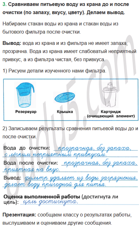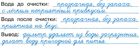 2) Запишите результаты сравнения питьевой воды до и после очистки.