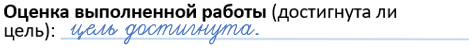 Оценка выполненной работы (достигнута ли цель): ___