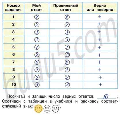 Выполни задания учебника на с. 154 – 158. При выполнении заданий заполняй таблицу. В столбце "Мой ответ" закрашивай кружок в тот цвет, который, на твой взгляд, соответствует правильному ответу. В столбце "Правильный ответ" закрась кружки так, как показано на "Страничках для самопроверки". Сравни эти два столбца и заполни третий: если твой ответ правильный, ставь знак "+", если неправильный – знак "–".