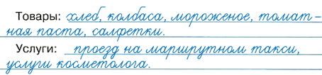 7. По заданию учебника запиши, какие товары вы приобрели в течение дня и какими услугами воспользовались.