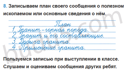 8. Здесь ты можешь записать план своего сообщения о полезном ископаемом или основные сведения о нём.