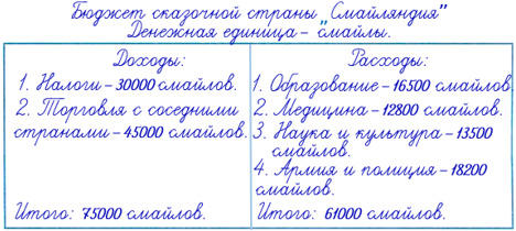 3. Наш Попугай – выдумщик и фантазёр – предлагает вам задание. Придумайте сказочную страну и составьте для неё бюджет.