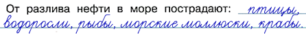 1. Выпиши из текста учебника (с. 73), какие живые существа пострадают от аварии нефтеналивного танкера.