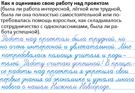 Как я оцениваю свою работу над проектом (была ли работа интересной, лёгкой или трудной, была ли она полностью самостоятельной или потребовалась помощь взрослых, как складывалось сотрудничество с одноклассниками, была ли работа успешной). ______________________