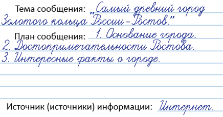 Здесь ты можешь записать интересные факты для своего сообщения и выполнить рисунки по своим впечатлениям. можно принести в класс фотографии, сделанные во время твоих путешествий по Золотому кольцу России.