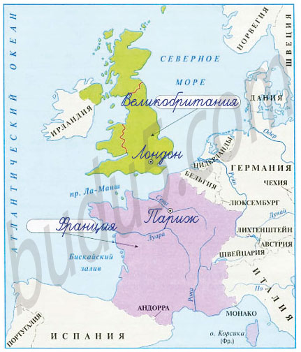 1. С помощью карты учебника подпиши названия стран, выделенных цветом, и их столиц.