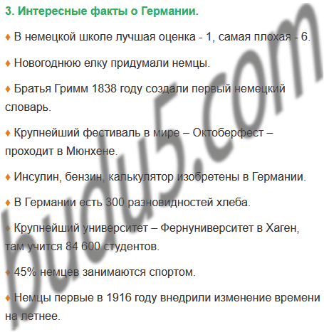 8. Если тебе интересно, подготовь сообщение об одной из стран центра Европы. Можешь воспользоваться информацией из учебника (с. 130), дополнительной литературой, Интернетом. Лучше выбрать страну, где тебе доводилось побывать. Тогда ты сможешь дополнить собранную информацию своими впечатлениями.