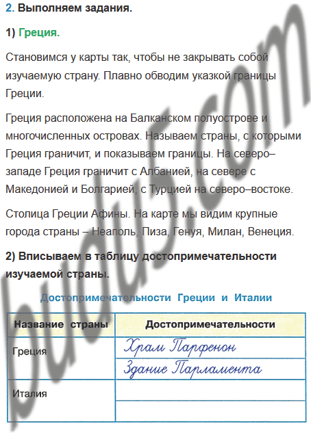 1) Научитесь показывать на карте изучаемую страну и её столицу. Территорию страны следует плавно обводить указкой по контуру (границе). Показывайте обозначение столицы, а не её название.