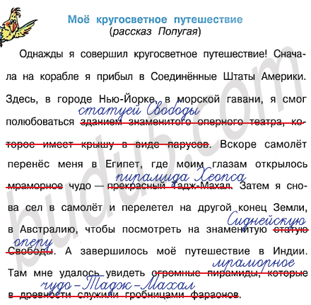 2. Наш неутомимый Попугай приготовил для вас новый рассказ! Всё ли в нём верно? Прочитайте рассказ и исправьте ошибки (зачеркните и напишите правильно).